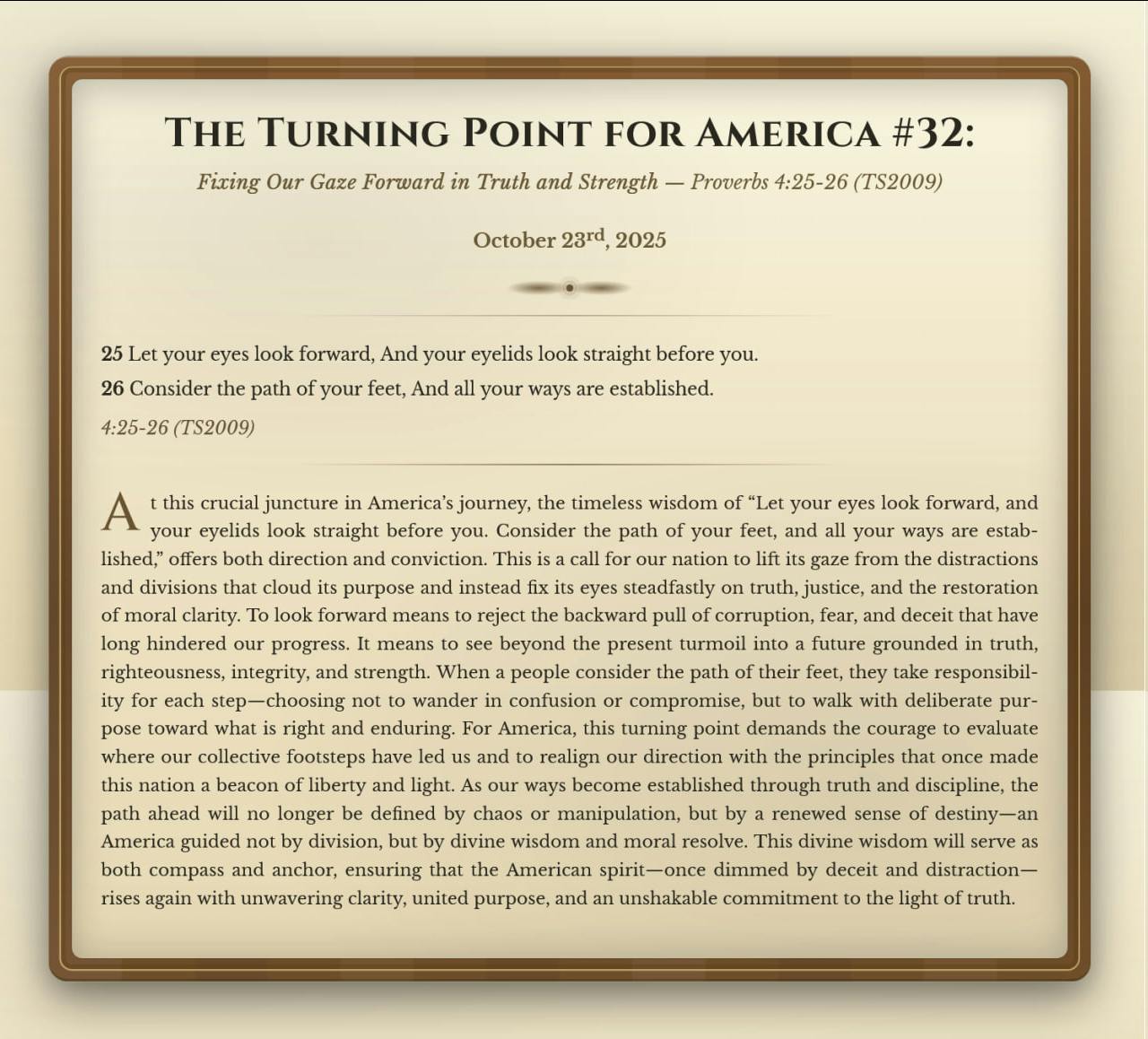 The Turning Point for America #32: Fixing Our Gaze Forward in Truth and Strength - Proverbs 4:25-26 TS2009