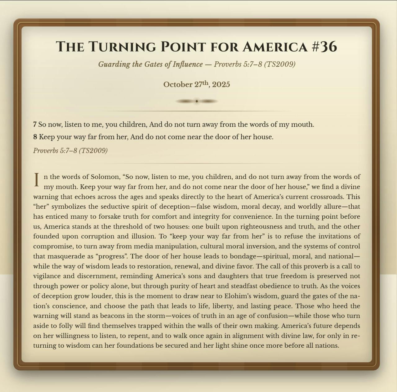 The Turning Point for America #36: Guarding the Gates of Influence - Proverbs 5:7-8 TS2009