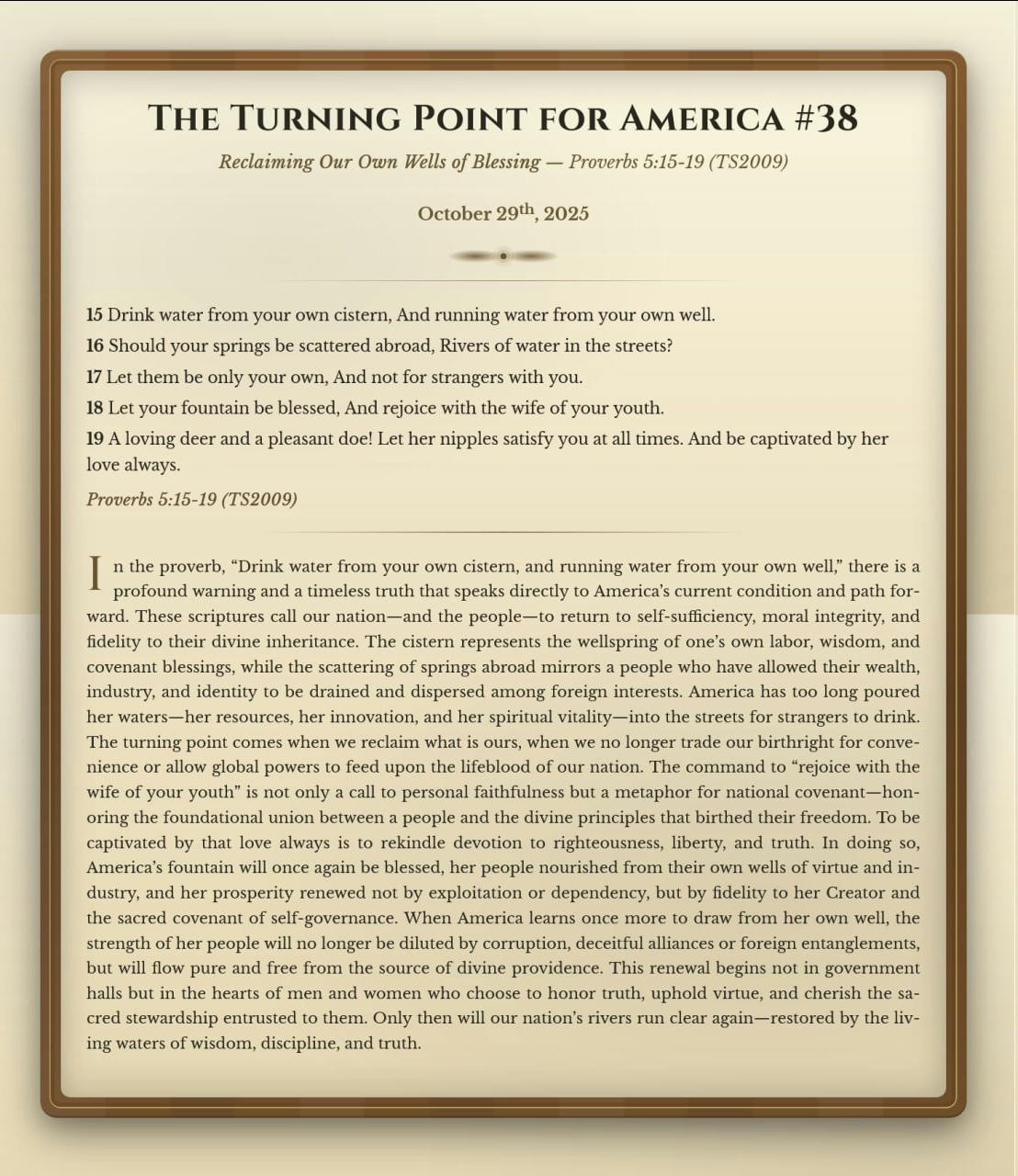 The Turning Point for America #38: Reclaiming Our Own Wells of Blessing - Proverbs 5:15-19 TS2009