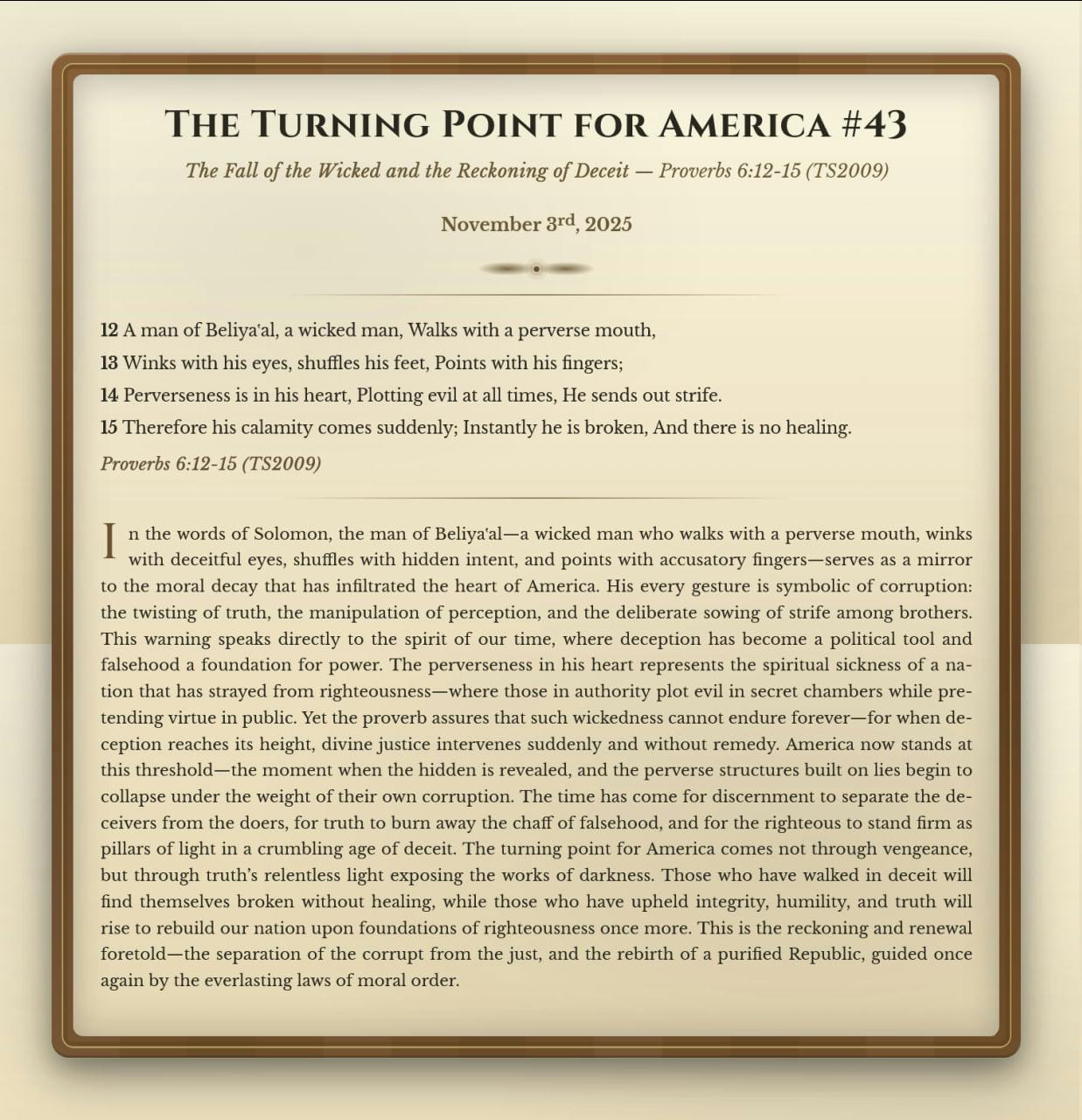 The Turning Point for America #43: The Fall of the Wicked and the Reckoning of Deceit - Proverbs 6:12-15 TS2009