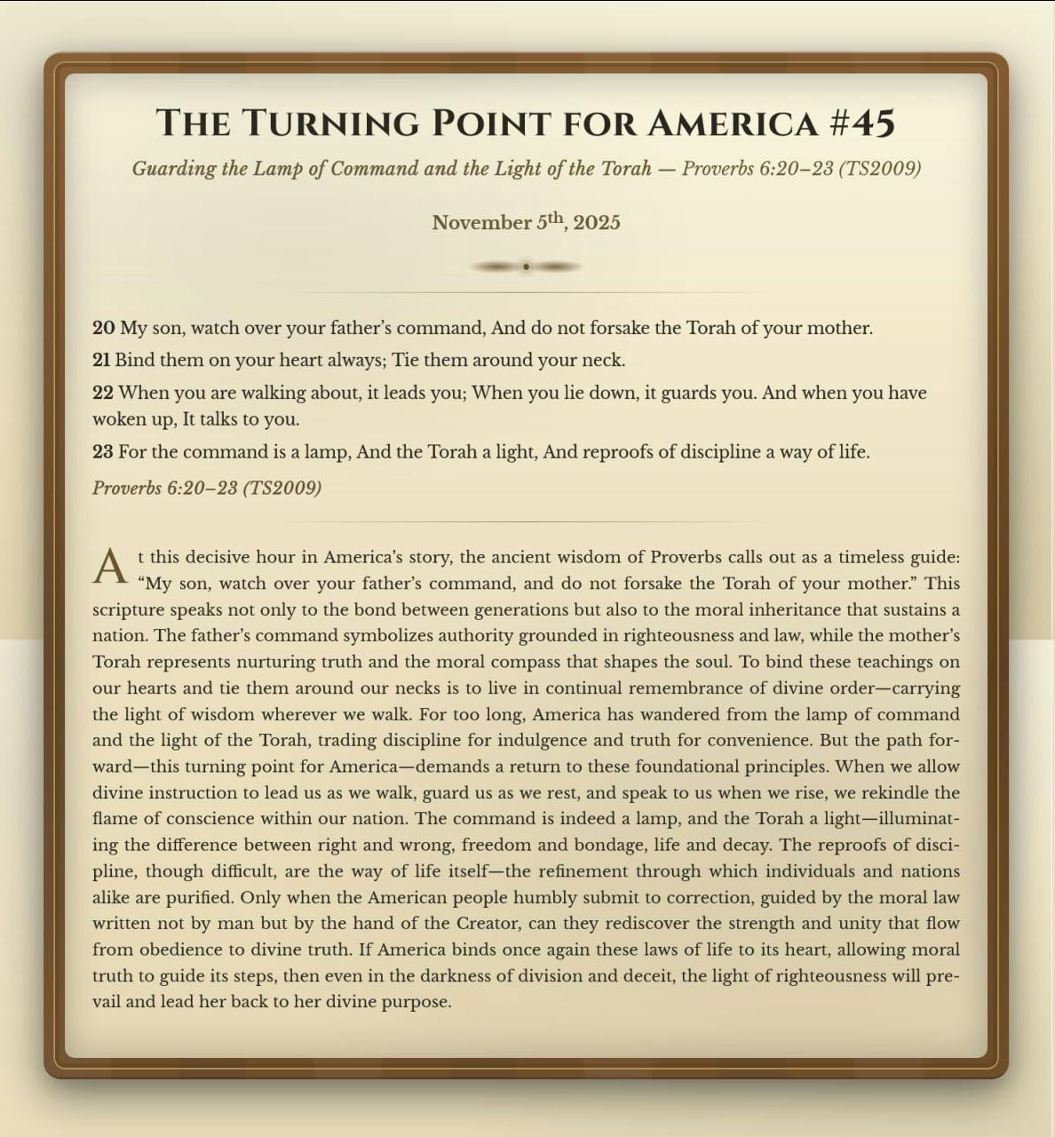 The Turning Point for America #45: Guarding the Lamp of Command and the Light of the Torah - Proverbs 6:20β23 TS2009