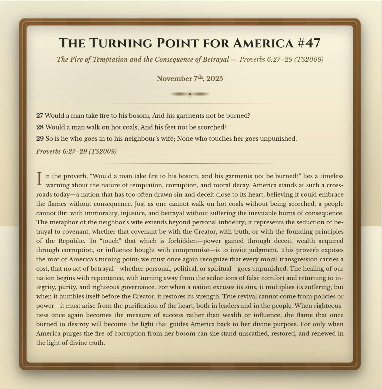 The Turning Point for America #47: The Fire of Temptation and the Consequence of Betrayal - Proverbs 6:27β29 TS2009