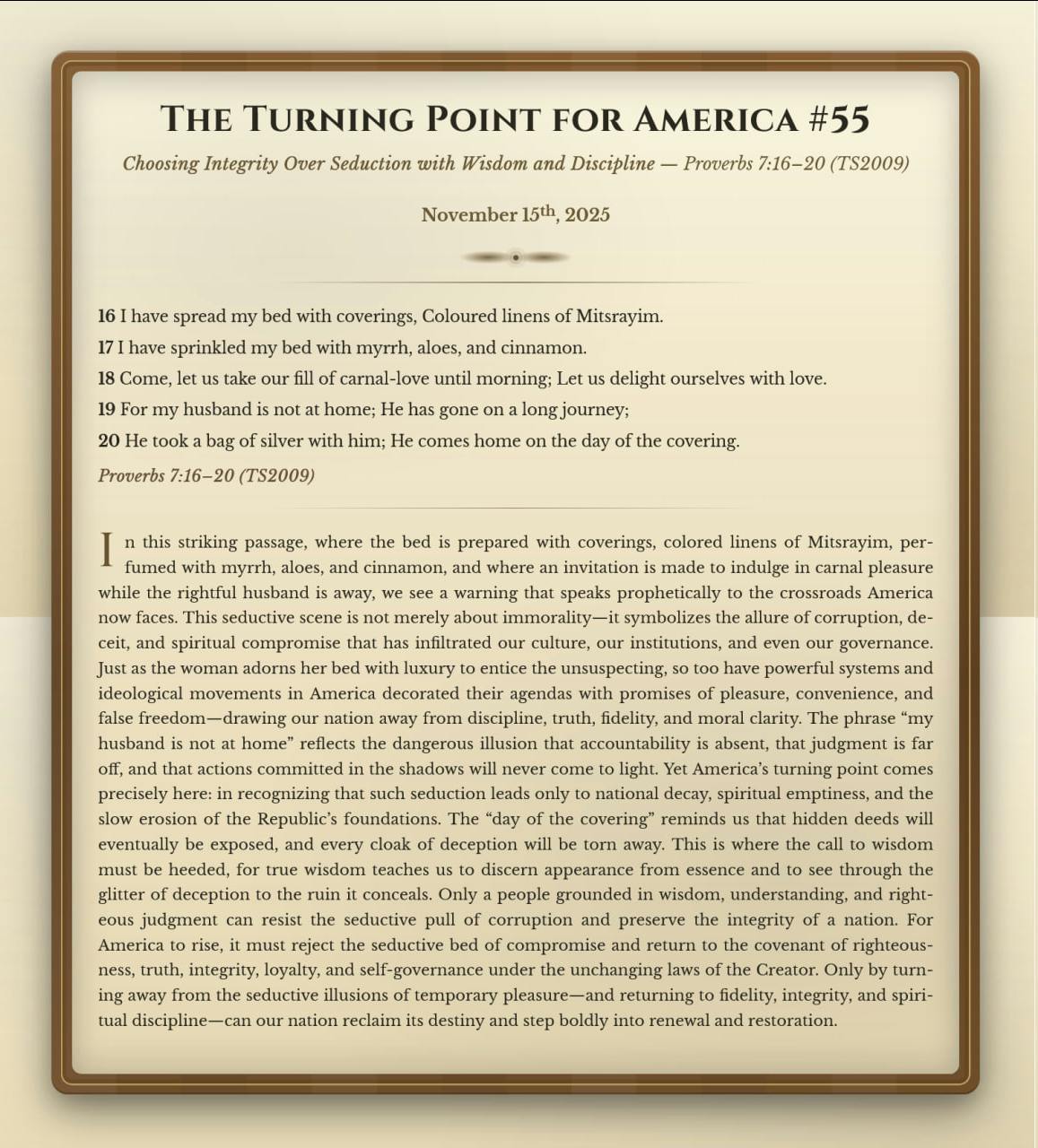 The Turning Point for America #55: Choosing Integrity Over Seduction with Wisdom and Discipline - Proverbs 7:16β20 TS2009