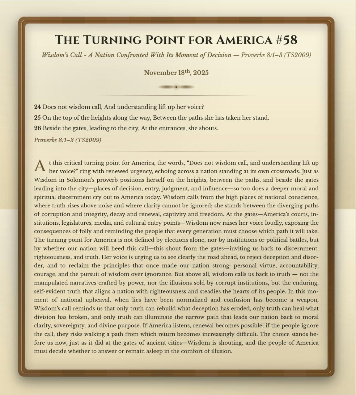 The Turning Point for America #58: Wisdom’s Call - A Nation Confronted With Its Moment of Decision - Proverbs 8:1–3 TS2009