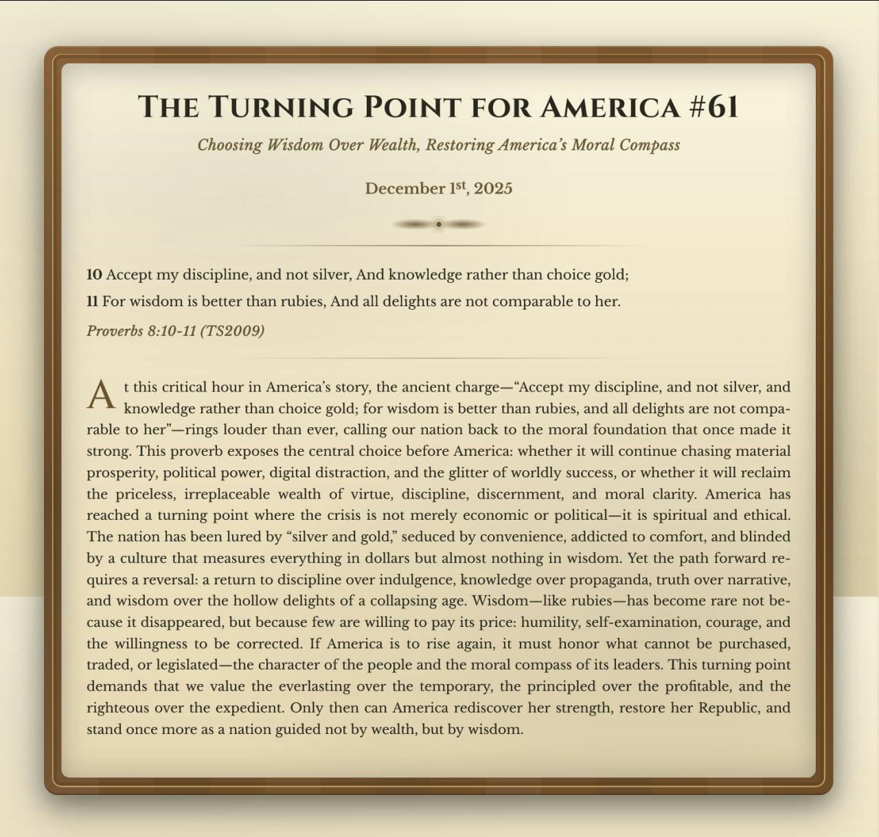 The Turning Point for America #61: Choosing Wisdom Over Wealth, Restoring America’s Moral Compass - Proverbs 8:10–11 TS2009