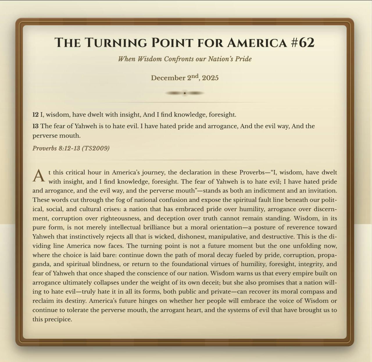 The Turning Point for America #62: When Wisdom Confronts our Nation’s Pride - Proverbs 8:12–13 TS2009