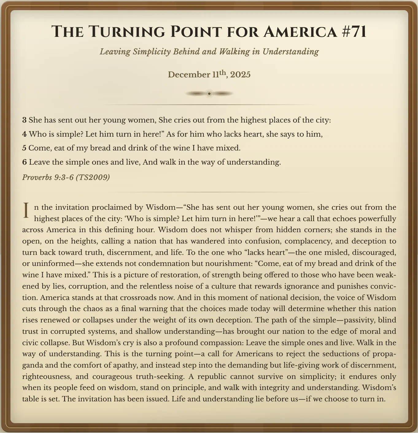 The Turning Point for America #71: Leaving Simplicity Behind and Walking in Understanding - Proverbs 9:3-6 TS2009