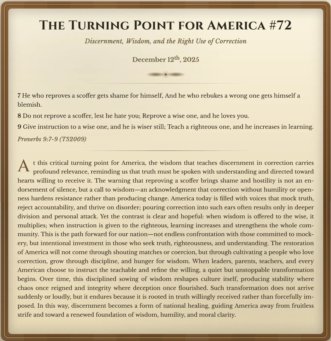 The Turning Point for America #72: Discernment, Wisdom, and the Right Use of Correction - Proverbs 9:7-9 TS2009
