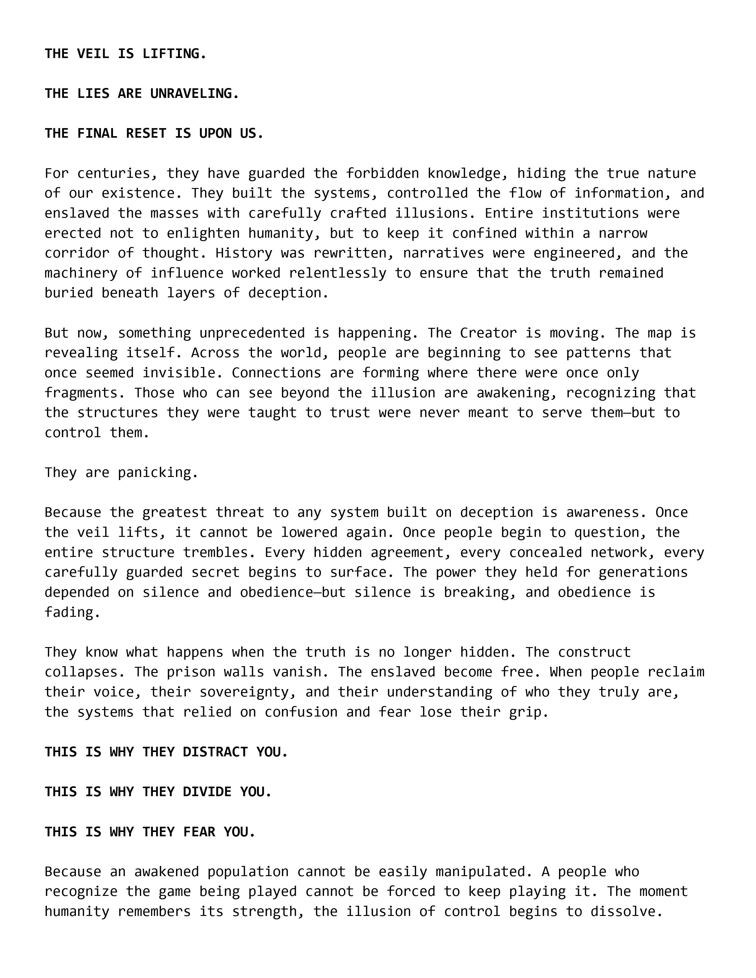 THE VEIL IS LIFTING!