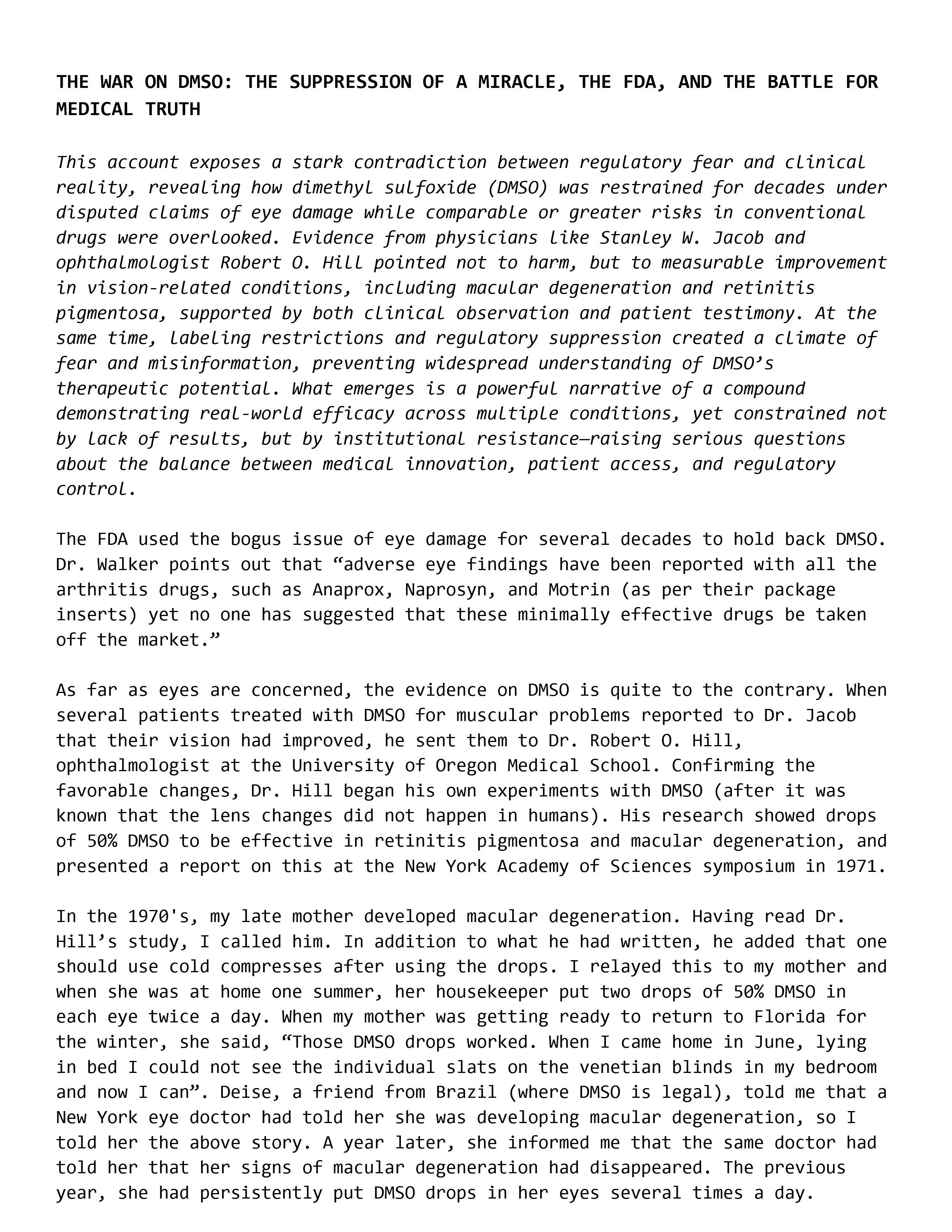 THE WAR ON DMSO: THE SUPPRESSION OF A MIRACLE, THE FDA, AND THE BATTLE FOR MEDICAL TRUTH