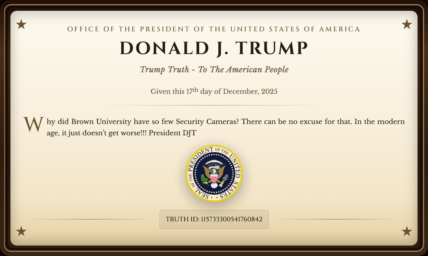 Trump Truth - To The American People - December 17th, 2025 - Truth ID: 115733300541760842