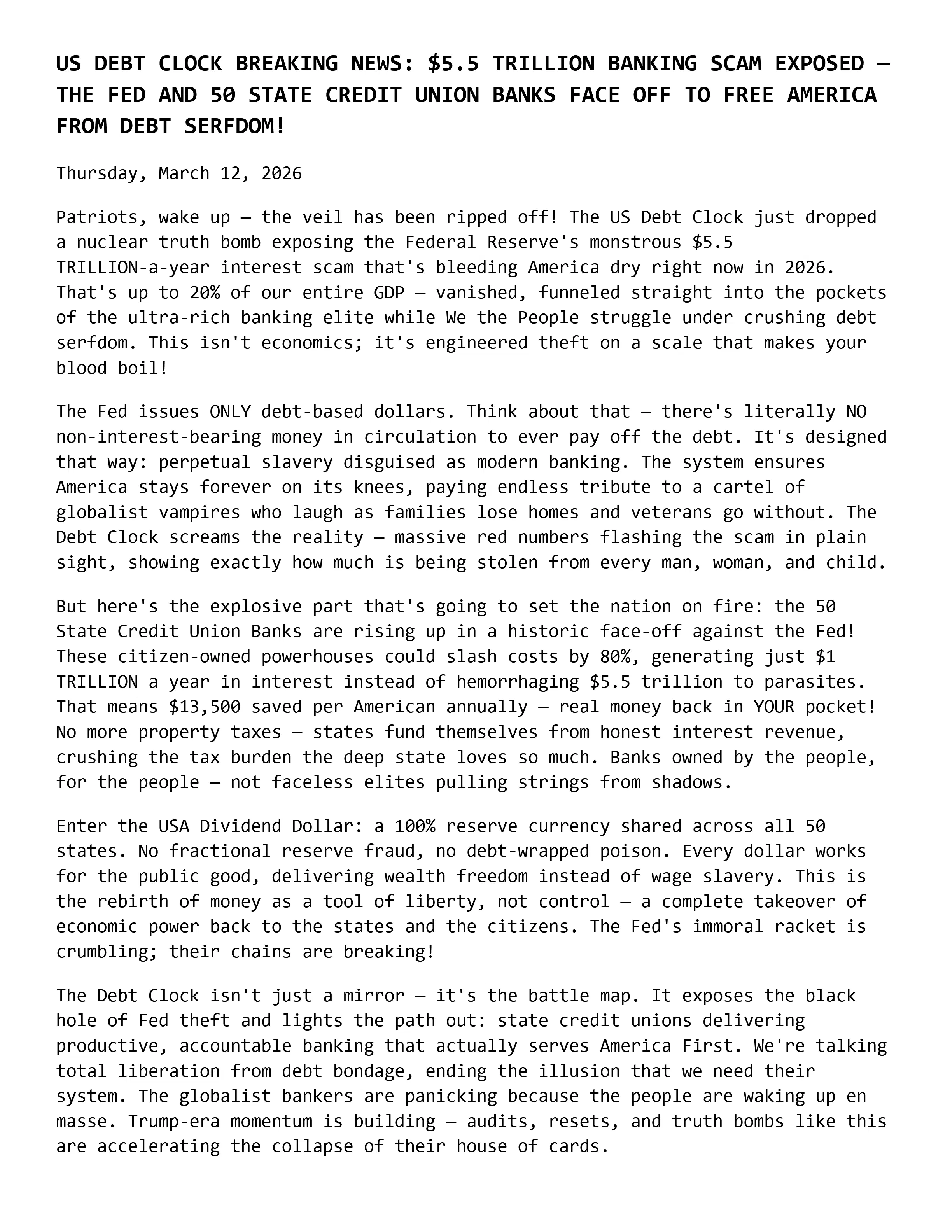 US DEBT CLOCK BREAKING NEWS: $5.5 TRILLION BANKING SCAM EXPOSED โ€” THE FED AND 50 STATE CREDIT UNION BANKS FACE OFF TO FREE AMERICA FROM DEBT SERFDOM!
